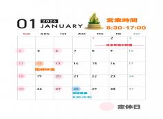 新年あけましておめでとうございます 本年も、更なるサービスの向上に努めて参ります。何卒よろしくお願い申し上げます 1月定休日 毎週火曜・日曜 ●時短営業 8日(水)・9日(木)・16日(木)・23日(木)は 9:30ー15:30の営業です。 ご不便をおかけしますが、何卒よろしくお願いいたします。